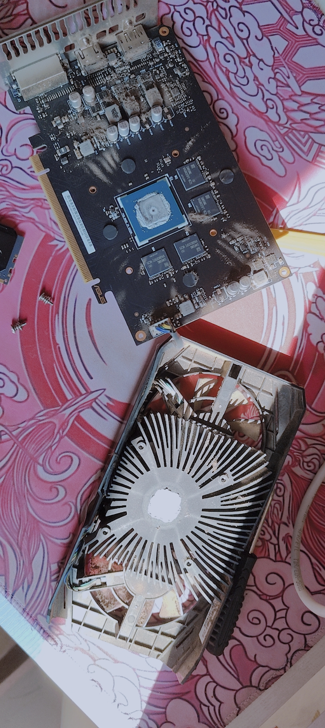 由于自己只会清笔记本的灰,没有自己做装过台式机,第一次上手在无教程的情况下进行了清灰,结果导致显卡金手指坏了一个金粒和电容坏掉了。有笨蛋喵